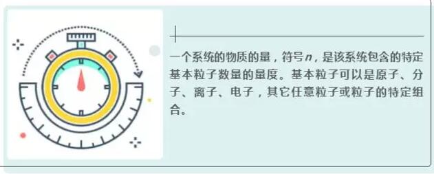 一個(gè)系統(tǒng)的物質(zhì)的量,符號(hào)n,是該系統(tǒng)包含的特定基本粒子數(shù)量的量度?;玖W涌梢允窃印⒎肿?、離子、電子,其它任意粒子或粒子的特定組合。